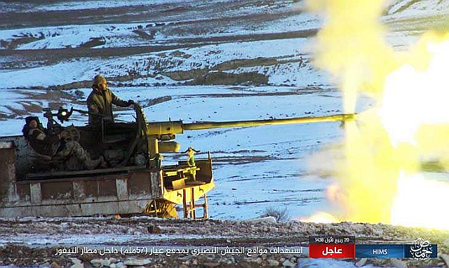 この戦闘では、シリア軍のヘリが、ISの対空機関砲ZU-23-2 anti-aircraft autocannon(ロシア製 低空用)で撃墜され2名が死亡している。パルミラを退却したロシア軍が放置したものの可能性があり、パルミラがISに占拠された際に懸念されていたことが現実になったようだ。(写真左はZU-23-2 参考写真)