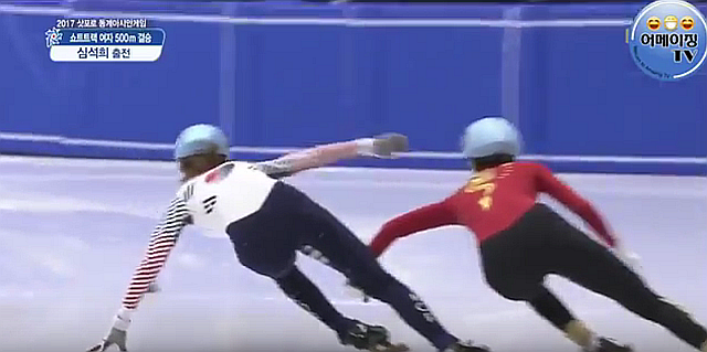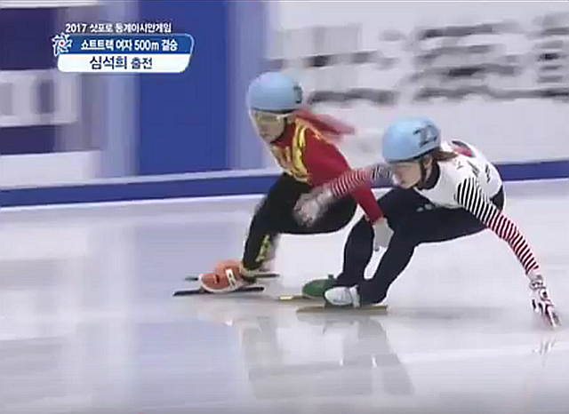 格となった。シム・ソッキは最終周を残して先頭を滑っていた中国の范可新(24)を抜いたが、范可新が左手でシム・ソッキの右膝を掴んだためスピードが落
