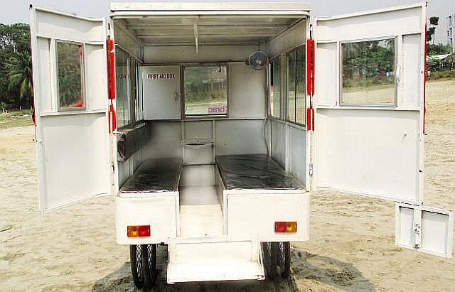 コスト面のメリットが期待され、従来の救急車が1台約330万円なのに対し、開発のソーラー3輪救急車は21万~28万円で出来ると期待されている。新型救急車は3人を載せることができ、最大速度は15~20 km /時、最大走行距離は50 km(30マイル)だ。 100ワットソーラーパネルを4枚、屋根に搭載。夜間はソーラーパネルから充電した4つの12ボルト電池で動く。救急車のバッテリーは3~4時間で充電もできるという。 チームは過去1年間で5つの試作品を作ってテストした。新型救急車は2017年の終わりに導入されることが期待されている。参照記事 英文記事