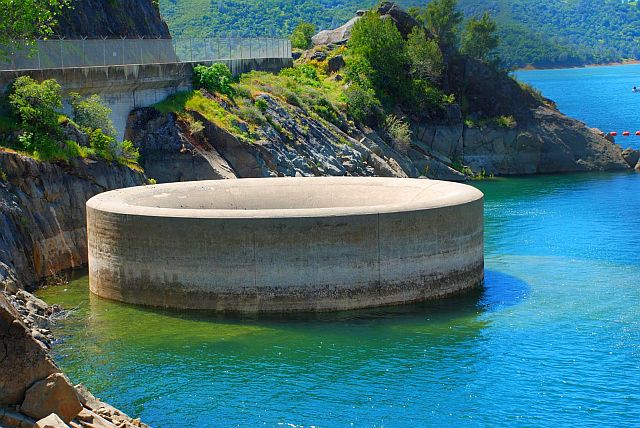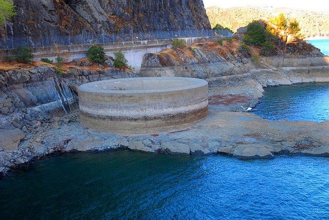 垂直な穴を水は渦を巻きながら流れ落ち、およそ600メートル下にある近くのプタ川に注ぐ。モンティセロダムが建設されたのは1940年代で、灌漑用水と飲料水を確保するためだった。現在もおよそ60万の住民が恩恵に預かっている。満水時の総貯水量は約19億立方メートル。過去2カ月にわたり、ナパバレー周辺は記録的な大雨に見舞われた。貯水量が少ない時は下の写真のようになる。参照記事 過去ブログ:2017年2月オロビル・ダムの危険性 映像と図で説明 米国