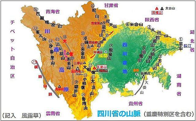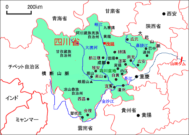 専門家は、四川盆地の北西の端にかかる約300キロにわたる龍門山断層帯の一部がずれたために起きたと分析し、これによって地質変動が起こり、龍門山断層帯は新たな活動期に入ったと指摘している。過去の、この付近の大地震も、この断層帯上にあると判明している。今後、さらに大規模な地震が発生する可能性が高いとされ、同時に、また大規模な山崩れが起きる可能性がある。左の地形図の、四川盆地北西部、成都市北部に龍門山があり、龍門山断層は、ほぼこの山脈に沿って位置している。 参照記事 参照記事 参照記事現地記事 参照記事 参照記事 過去ブログ:2013年4月四川省でまた大地震マグニチュード7.0 中国 2011年6月すでに手遅れか 三峡ダム問題 すでに老朽化進む 中国 2008年5月20日四川大地震:(震源地。四川省シセンショウ汶川县ブンセンケン) 汶川地震致8省市9219人死 2008年5月24日集落が消えていく、、。