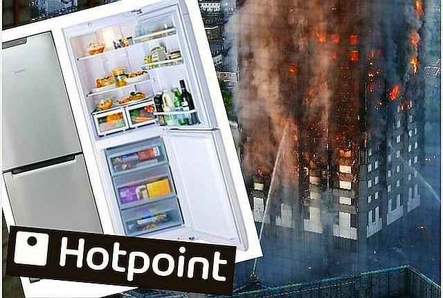 ロンドン西部の公営高層住宅「グレンフェル・タワーGrenfell Tower」の火災(The Grenfell Tower fire)について、ロンドン警視庁The Metropolitan Policeは2017年6月23日、出火元は4階(日本の5階)の住宅とみられ、米家電大手ワールプールWhirlpoolが販売した「ホットポイント」ブランドの冷凍冷蔵庫:モデルFF175BP、2006~2009年に製造 Hotpoint fridge-freezer (model number FF175BP、 manufactured between 2006 and 2009)が発火元だと発表した。