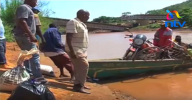 与党“Jubilee Partyリーダーは、橋の完成は、住民が安全に学校、市場、病院へ通う事ができ、水難事故を防ぐと語っていたが、今度は、川の増水に関係なく危険が増したようだ。渡し船の向こうに、崩壊した橋が見え、橋桁を受ける橋脚が1本完全に無くなっている。普通はありえないが、橋脚が崩れたのか? 参照記事 過去ブロ