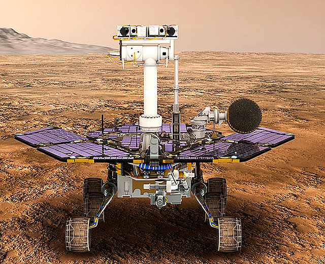 この探査機は、2004年1月25日、火星の赤道付近にあるメリディアニ平原、後にイーグル・クレーターと呼ばれるクレーター内部に軟着陸し、もともと90日の設計寿命を想定し開発された車両が、もう約5年近くも作動している。弱った太陽電池に時間を掛けて充 電し、クレーターの周りでまだ鉱石調査を続行するという。これを奇跡と言うのかも知れない。すでに回路不良やモーターの急