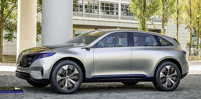 2017年9月21日:写真右は、メルセデスベンツが、2019年から生産予定のEQブランドの最初の市販EV『EQC』。公式発表の1年以上も前にして、同車の先行予約受注が、早くもノルウェーで開始された。『EQC』は『ジェネレーションEQ』の市販版。ジェネレーションEQは、2個の強力な電気モーターを搭載。最大出力408hp(英馬力)、最大トルク71.4kgmを引き出す。このパワフルなモーターのおかげで、0~100km/h加速5秒以下の性能を発揮する。二次電池は、蓄電容量70kWhという大容量のリチウムイオンバッテリー。1回の充電での航続は、最大500kmと言われている。
