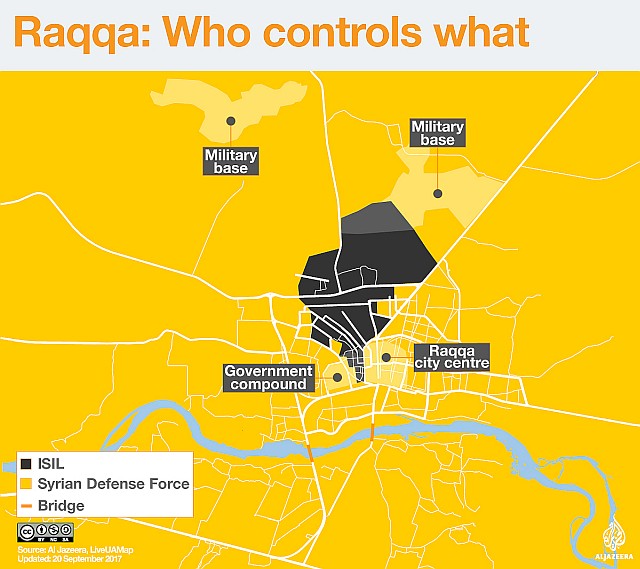 2017年9月21日:現在もクルドSDF軍のIS掃討が続くシリアのラッカ市Raqqahでは、市の80~90%からISを排除したが、依然として中心部にISが包囲されていると20日に報道された。SDFは同時に、ラッカ市北部での新たな最終的な作戦の開始を公表している。市内の残存ISは、すでに食料も弾薬も欠乏している状態だと監視機関が発言している。