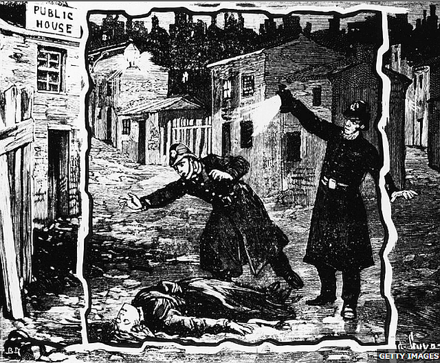 左のイラストは、1888年9月30日(日) - キャサリン・エドウッズCatherine Eddowes(43歳)の遺体発見の様子。2014年には、キャサリン・エドウッズの遺体のそばにあったショールと、被疑者の子孫のDNA鑑定が行われ、それにより、ユダヤ系理髪師で、事件当時、容疑者として一度逮捕されたアーロン・コスミンスキー(Aaron Kosminski 当時は証拠不十分で不起訴 、1891年壊疽で死亡)が犯人だった、という衝撃的な説がスクープされたが、その後すぐにDNA鑑定に誤りが見つかり、事件は再び白紙に戻った。過去ブログ:2014年9月「切り裂きジャック」の犯人をDNA鑑定で特定?英国