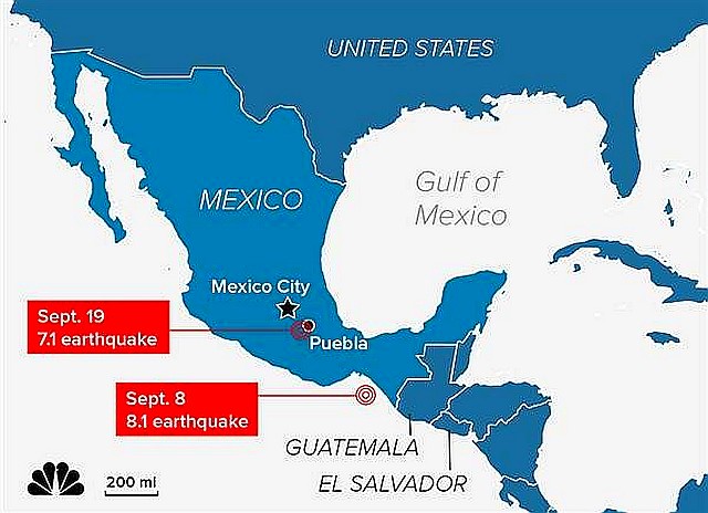 現地時間2017年9月19日午後1時14分(日本時間の9月20日午前3時すぎ)、メキシコでマグニチュード7.1の地震 7.1 magnitude earthquake shakes Mexico があり、地元メディアによると、これまでにメキシコ国内で少なくとも200人が死亡した。震源地に近い首都メキシコシティーなどでは、少なくても27の建物が倒壊するなどの被害が出ていて、取り残された人たちの救出活動が続いている。メ