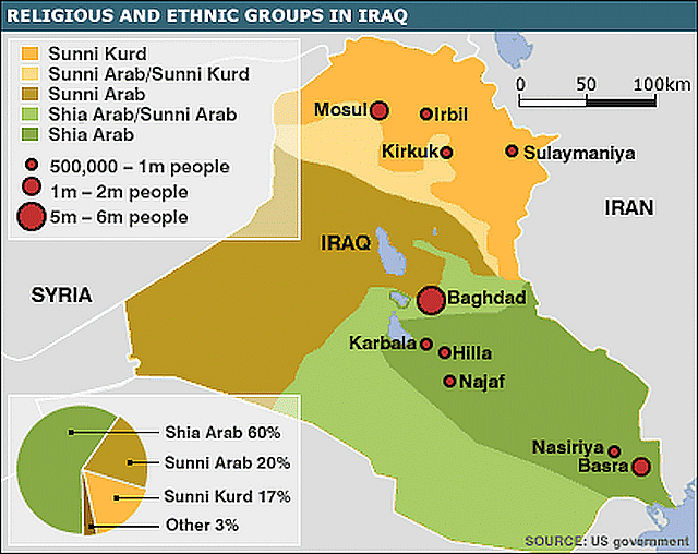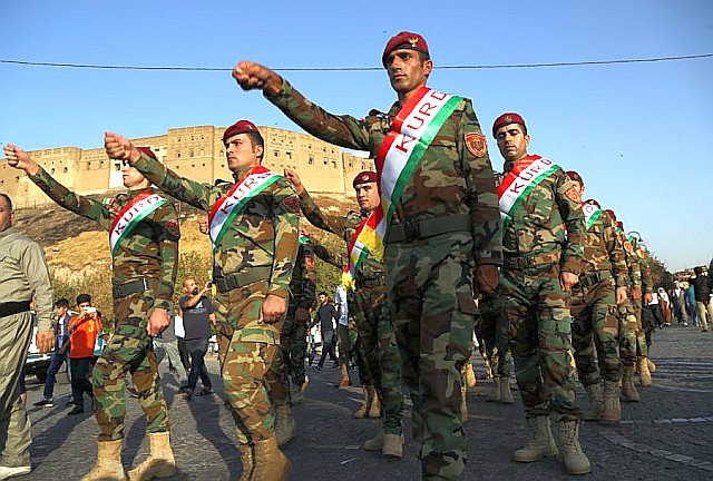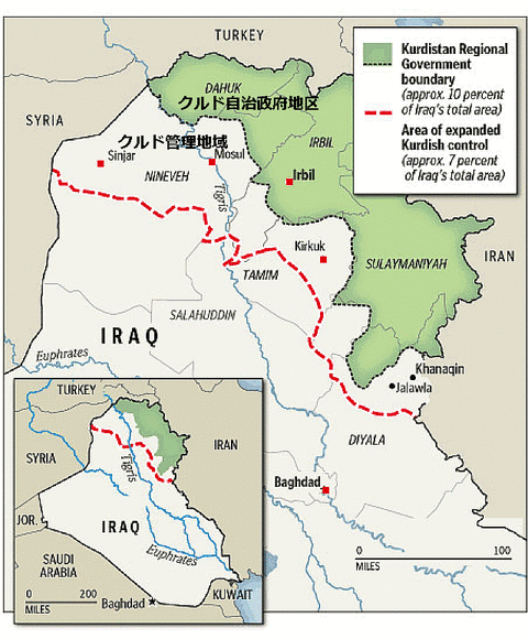 ア派支配の中央政府はクルド人やスンニ派に十分な富の分配をせず、対立が深まった。ここ数年は、クルド地域への予算が届かず、自治地域では教師や公務員の給料も滞りがちになり、中央政府への不満と独立への渇望が高まっていた。ISとの戦闘で、有志国連合から支援を受けたペシュメルガPeshmerga:右 が軍隊と言える規模にまで成長した事は、クルドにとっての大きな自信だが、イラクに中央政府には不安材料でしかない。イラク政府軍やシーア派民兵軍団はすでに、クルド側との対決に備えて、キルクーク周辺に展開中とも伝えられるなど新たな軍事的な緊張が高まっている。