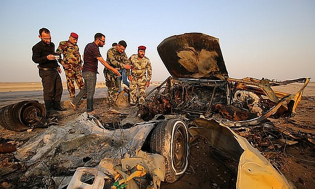 これまで紛争とは関係の無かったイラク南部ジカル(Dhiqar)県ナシリヤ(Nasiriyah)近郊にある飲食店と検問所で9月14日昼、武装集団による銃撃と車を使った自爆攻撃が発生し、地元当局によるとイラン人を含む74~84人が死亡し93人が負傷した。飲食店は、シーア派巡礼者が頻繁に出入りする店だった。ISが犯行声明を出している。写真の残骸は、検問所攻撃で自爆犯2名が使用したトラック。検問所は、首都バグダッドに通じるハイウェイ上にあった。