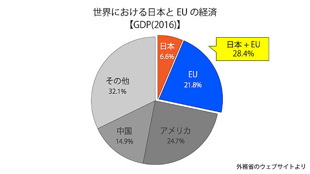 日本とEUのEPAが発効すれば、人口6億3000万余りの巨大市場での貿易がさらに活発になることが期待される。EUは日本とのEPAで日本への輸出が34%増え、EUのGDPを最大で0.76%押し上げる効果があると見込んでいる。特にEUは加盟国に農業国が多く、日本と大枠合意したEPAを通じて、食品や農産物の輸出が拡大することに期待している。