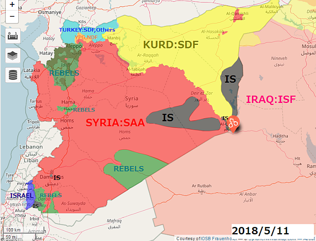3月にフランスのマクロン大統領French President Emmanuel Macronがシリア北部を訪れクルド側と協議した際、フランスはマンビジュManbijへ米軍支援で部隊を派遣し、同地域へのトルコ軍侵入を阻止する意向だと語ったとされる。これに対しトルコ側が「そのような動きは侵攻である」と発言したと、クルド側メディアが報じている。有志国軍は、アフリン地域での対トルコ防衛と同時に、デリゾール県Deir ez-Zor province地域でISが活動を活発化させていることで、シリア中部、東部での対IS作戦を開始した。シリアのダマスカス南部のISに対するシリア軍の攻撃は現在も続行中。