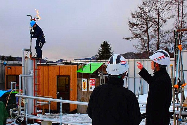960mまでの試掘を開始し、2017年9月から市内で国内初の試験に取り組み、2017年12月には生産施設で天然ガスが燃焼する様子を公開していたが、生産量は想定の3分の1以下にとどまり、現状では事業化は難しいと判断した。