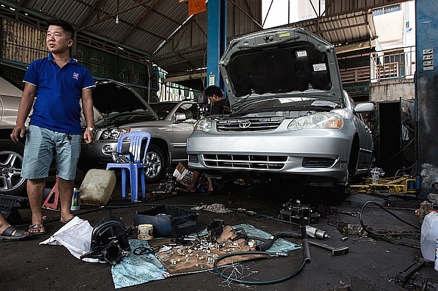 低開発国、後進国の安い労働力や購買力を期待するだけでなく、上記のような新たな技能者を増やし、起業させていく方向は両国にとってもいいことだろう。同時に日本製の検査機器、工具なども輸出される。現在、カンボジアに入る約8割の中古車がアメリカから輸入されている。特徴的なのが米国メーカーの車ではなく、左ハンドルの日本メーカー車という点だ。レクサスのRXやLXなどは大人気だ。変化した理由として2001年製造以降のモデルで更に左ハンドル車でないと中古車として登録ができなくなった。プノンペンPhnom Penh 市内には約300店の中古車販売店があり市場は活発だ。しかし、アメリカからの車はほとんど保険会社から買い付けた事故車であるという問題点は放置されたままだ。誤解を恐れずにいえばカンボジアは「アメリカの自動車ゴミ集積場」となっている。アメリカでの事故車やすごい走行距離を走り自国で販売できないような中古車がカンボジアに入ってきている。輸入中古車のうち約40%が全損状態から修復されたものだという。
