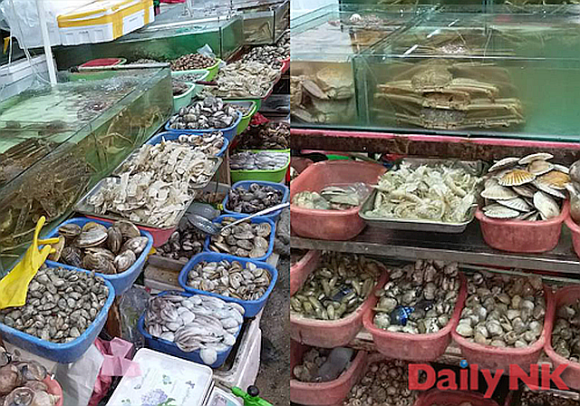「この貝は北朝鮮産だ。制裁対象だが最近は仕入れやすくなった」と丹東の中国人仲買人。
