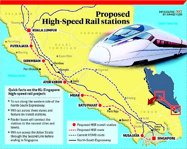 上記の計画に並行してマレーシア政府は、全長350キロのクアラルンプール~シンガポール高速鉄道(Kuala Lumpur–Singapore:HSR=High Speed Rail)計画をシンガポール政府と既に2016年7月19日合意しているが、この計画についても28日廃止を表明しており、計画廃止には違約金がかかるとして「(シンガポール政府