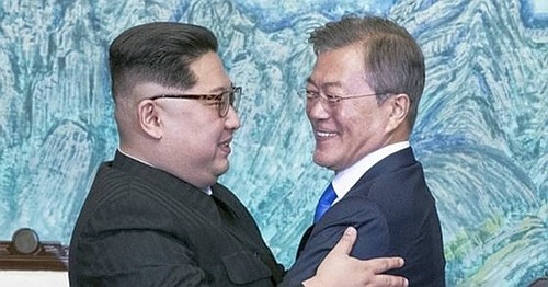 以上は5月22日の朝鮮日報からだが、「北朝鮮が要求する段階的非核化~」という部分は韓国側の希望的観測であって、板門店宣言には北朝鮮が非核化するとの内容は無いばかりか、北朝鮮は、朝鮮半島の非核化には米国も非核化しなければならない、核放棄と支援のバーターはしないと言い始めている。結果的に韓国は、6月12日予定の米朝会談での手打ちを前提にした大事な事前協議で失敗したのであって、今の時点まで冷静に、かつ懐疑的に見ていたのは日本だけだったのではないのか? つまりは、右上のような4月27日午後の写真を公表