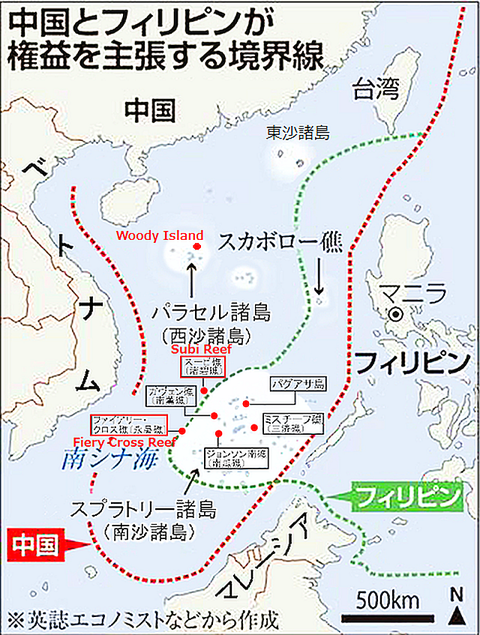 2016年7月12日、フィリピンの提訴を受け、オランダ・ハーグの常設仲裁裁判所The Permanent Court of Arbitration in The Hague, Netherlands は、中国が「歴史的権利」として主張する「九段線:左図赤線」について国際法上の根拠は認められないとの裁定を公表しているが、現在に至るも中国は無視し、当然一帯のさんご礁の破壊も行なわれている。この事は、周辺国の漁業へも影響が出るだろう。 過去ブログ:2018年5月「ロシア石油」がベトナム沖中国9段線付近で採掘 4月南シナ海で完成に近づく中国の環礁空母化とフィリピン 2017年12月南沙諸島で進む軍事基地化 中国 ベトナム 2016年7月ハーグの仲裁裁判所は中国の主張認めずと公表 2月華僑国家シンガポールも嫌気をさす中国の覇権主義 2014年10月南シナ海の紛争地に軍事滑走路完成 中国 2012年8月世界海軍史最悪の中国海軍の蛮行と領有権問題まとめ