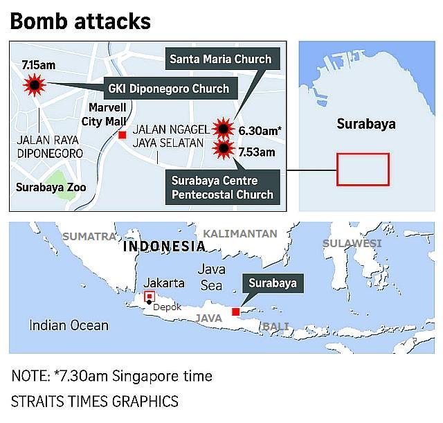 インドネシアでは2018年5月13日に東ジャワ州のスラバヤでキリスト教会3か所、同月14日、16日にはスラバヤ市警本部やリアウ州警察本部などを狙った爆弾テロ、襲撃事件が連続して発生、多数の死傷者を出した。5月13日、14日のわずか2日間で自爆テロ4件、誤爆1件の計5件が発生し、警察官や一般市民、自爆テロ犯を含めた25人が死亡、多数の死傷者がでる事態となっている。これを受けて国会は長年の懸案だった「反テロ法改正案」を5月25日に可決し、対テロ対策での警察権限の強化とテロとの戦いに国軍の参加を容認することになった。過去ブログ:2018年5月ISの攻撃相次ぐ アフガン インドネシアでも、、。