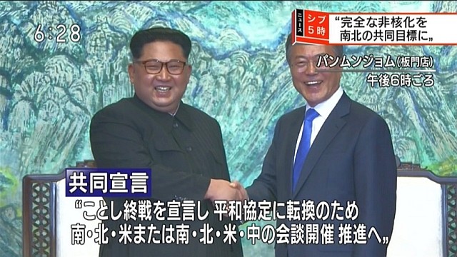 ジュネーブの国連ヨーロッパ本部では、日本など各国が核軍縮などについて話し合う軍縮会議が開かれていて、6月26日、米朝首脳会談とその共同声明について各国が発言し、この中で日本の代表は「北朝鮮は共同声明で完全な非核化に取り組むと約束した。日本は、アメリカや韓国と連携して声明の履行を求めていく」と述べて、北朝鮮に対し、非核化に向けた具体的な行動を速やかにとるよう求めた。これに対し、北朝鮮の代表は、「日本は、ことし4月のパンムンジョム(板門店)宣言(南北首脳会談:写真右)と米朝首脳会談の共同声明に署名していない。関わりのないことに首を突っ込むべきではない」と反論した。参照記事 参照記事国連加盟国としての日本の非核化の要求発言に対し、日本の敗戦後に誕生した国が、日本の過去?の清算についての要求や、拉致に対し、「ありもしない」などと論理的に破綻した論調を繰り返している。このことだけ見ても、米朝会談は破綻し、状況は後退し悪化しているとも取れる。米国が非核化に対し期限を設けないと言うに及んでは、事実上非核化は不可能で、日本が何か行動すれば、彼らは被害妄想から来る「再侵略を狙っている」との妄言を繰り返し、通常ミサイルを日本に向けて発射するだろう。防衛力強化以外無策の日本、このままで良いわけが無い。中露に擦り寄るか?