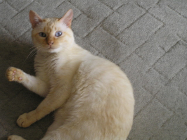 回虫も持っていたが治療し、少し元気になって、汚れた体を洗ってやると、灰色ではなく、白いネコで、しばらくすると元気に狭い部屋を走り回り、その頃から夜は布団に潜ってきて一緒に寝るようになった。