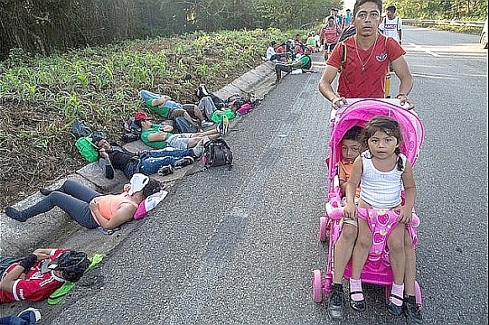 中米では貧困や暴力から逃れようと女性や子供も含む多くの人々が米国との国境に向けて移動。25日早朝、メキシコ南部のマパステペックMapastepecに約5300人が到着しているとされるが、メキシコ当局は4000人未満としている。これに続き、1000人以上からなる別の集団がグアテマラGuatemalaを出発しているとの報道や、集団は1万人に達するだろうとの記事も在る。集団が次に目指すのは、約40キロ離れた ピヒヒアパンPijijipiapan