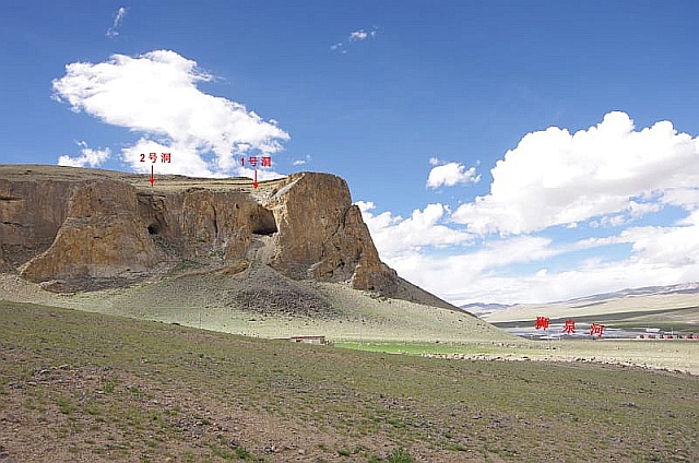 同地区ゲギェ県にある同遺跡の標高は約4600メートル。一列に並んだ二つの独立した洞窟からなる。一方の洞窟の面積は1千平方メートル以上あり、もう一方は約250平方メートル。いずれからも豊富な古人類の文化遺物が発見された。