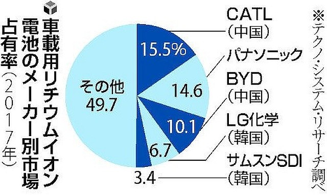 EV用電池を巡っては、VWが25年までに500億ユーロ(約6兆2千億円)の予算枠を設定。すでに中韓の電池大手と契約を結び、自前でも電池を生産する。トヨタは仕入れ先の多様化へ向け中国大手からの調達も検討している。