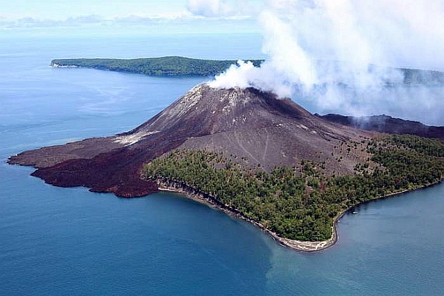 アナク・クラカトアは昨年12月22日に噴火し、津波を発生させた火山島。噴火で火口の一部が崩壊し海に流れ込んだために津波が起こり、この津波で少なくとも426人が死亡した。
