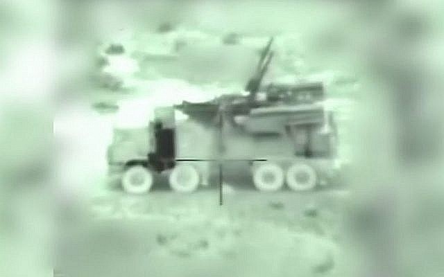 イスラエル国防軍(IDF)は2019年1月21日未明、シリア国内のイラン標的に攻撃を開始したとツイッターで発表した:右。イラン革命防衛隊の精鋭部隊クッズ部隊Quds Force(Qods Force)に対する作戦だという。IDFはツイッターで「シリア領内のイラン・クッズ標的の空爆を開始した。イスラエル軍や領土に危害を加えようとしない方が良いと、シリア軍に警告する」と攻撃開始を発表し,イスラエル戦闘機はダマスカス国際空港敷地内の武器庫や、イラン情報機関拠点、イラン軍事訓練キャンプを爆撃したという。上の車両は、ゴラン高原Golan Heightsへのロケット攻撃に対し、イスラエルが発射したミサイルが攻撃目標として撮影したシリア軍の移動対空砲積載の車両。 記事と映像 参照記事