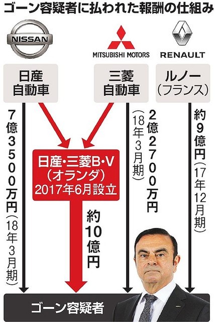 2019年1月21日:三菱自と日産は2017年、協業によるシナジー(相乗効果)創出の促進を目的として、折半出資でオランダ法人NMBV(Nissan-Mitsubishi B.V.)を設立。ゴーン被告はNMBVとの間で、同被告をマネージングディレクターとする雇用契約を独自に締結し、2018年4月末から11月にかけて、その報酬などの名目で不正に約780万ユーロ(約10億円)の支払いを受けていた。この雇用契約はNMBVにおいて権限のない者によって締結されていたほか、ゴーン被告に対して同社から何らかの報酬を支払うことに関する適正な手続きがなされていなかったという。一連の行為は、ゴーン被告が日産の幹部社員ら一部の者に実行を指示。その際、同幹部社員はゴーン被告に対して、雇用契約を締結する前にNMBVの取締役である三菱自の益子修会長兼最高経営責任者(CEO)と日産の西川広人社長兼CEOの了承を得る必要があると伝えたにもかかわらず、同被告は一切知らせることなく契約を締結した。、、 参照記事