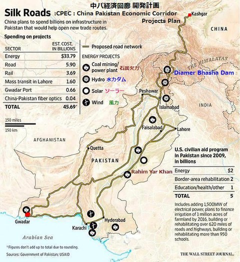 、、パキスタンが新政権になり、中パ経済回廊 CPEC:China Pakistan Economic Corridorに対する中国の大型投資への警戒心から、近年計画の中止や縮小が相次いでいる。