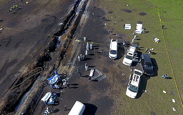 メキシコ中部イダルゴ州トラウエリルパンTlahuelilpan, Hidalgoで2019年1月18日夕方7時頃、パイプラインが爆発し、少なくとも73人が死亡、76人がやけどなどで負傷した。死傷者数はまだ増える可能性が在る。AFPは、18日に燃料を密売するグループがパイプラインに穴を開けたとの通報を受け、兵士約25人が現場に駆け付けて封鎖を試みたが、目撃者によると兵士らは、漏出した燃料をバケツや缶に集めようと群がった一般の人々推定700人を抑え込むことができなかったと報じている。最初にパイプラインに穴が開けられてから約2時間後に爆発した。