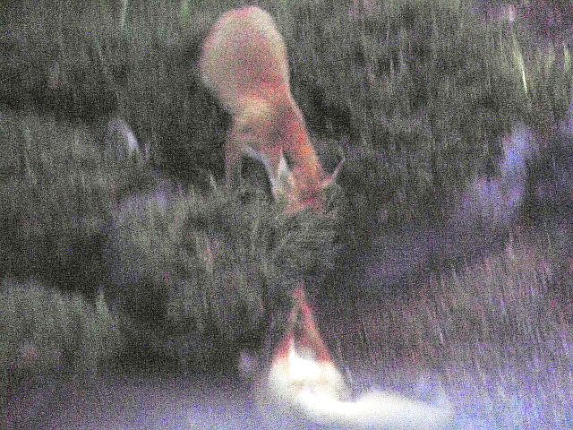 、、、自分が用意した餌を親が牧草畑に運び、尻尾をフリフリ大喜びで食べては遊び、目の前で逞しく育った3匹。もし、もう巣立ったのなら、これからも逞しく生きてほしい。もし餌に困ったらいつでも御出で。雨が降っても、雪が降っても用意しておくからね。今は31日午前1時半、気温は21度。ママさんが一匹で散歩する時間だ。