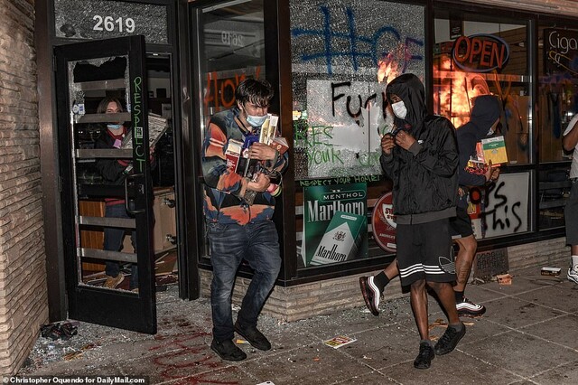 ネアポリスでは事件を受け、3晩連続で暴動が発生。多数の商店が略奪の被害を受け店舗数百軒が損壊し、警察署が炎上する事態となっていた。英文記事と画像 英文記事と映像