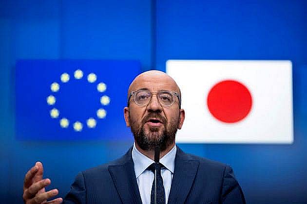 欧州連合(EU)のミシェル大統領(欧州理事会議長:President of the European Council 元ベルギー首相)は2020年5月26日、中国政府が反体制活動を禁じる「香港国家安全法」を制定しようとしていることについて「香港の高度な自治が守られることを非常に重視している」と述べ、中国側に自制するよう求めた。安倍晋三首相とのテレビ会議後の記者会見で語った。ミシェル氏は、安倍晋三首相とのテレビ会議後、「香港基本法と国際公約に従い、香港の高度な自治権を維持することを非常に重要視している」と指摘。EUと日本は中国について「同じ考えを共有している」とし、EUは香港に自治権を与えている「一国二制度」の原則を支持し、EUは中国の「一国二制度」を尊重するとした一方、「中国の振る舞いに甘い考えは持っていない」と語り、中国の行動を注視する考えを示した。写真は、日EU首脳によるテレビ会議後に記者会見するEUのミシェル大統領(26日、ブリュッセル)=ロイター