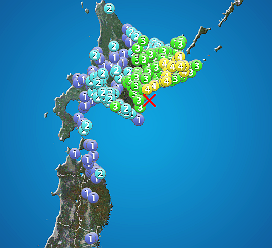 、、、札幌の筆者も、今回の地震の揺れを感じた。主な各地の震度は次の通り。 震度4=北海道釧路市、根室市 震度3=北海道帯広市、北見市、震度2=紋別、根室、千歳、富良野、斜里、浦河、羅臼(北海道)階上(青森)、震度1=札幌、小樽、八戸、むつ、六ケ所、五戸(青森)盛岡藪川(岩手)登米公民館(宮城)など