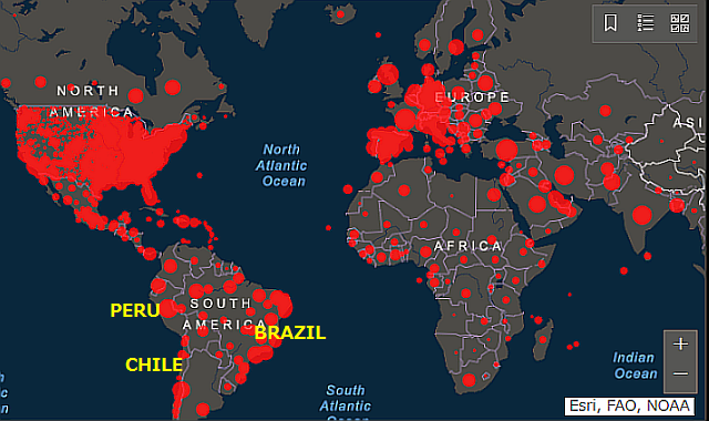 このほか、チリとペルーも被害が深刻だ。両国は10万人当たりの感染者数がブラジルの2倍で、世界でも最悪規模。感染者数はペルーが約12万人、チリが約7万人でいずれも4月末~5月初めにかけて急増した。