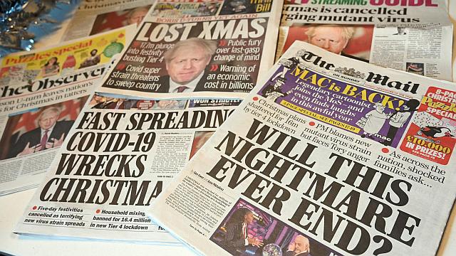 2020年12月21日:世界保健機関(WHO)は、新種のコロナウイルス(New coronavirus variant、new strain of coronavirus、または、 new COVID19 virus variant:新型コロナウィルスの変異体、亜種)発見に関連し英国政府と緊密に連携しており、然るべき情報が明らかになり次第、その特徴について世界に発信する。この件に関してWHOがツイッターで12月20日発表した。写真右は「悪夢は終わらない?」と報じる英国紙。21日報道では、日本で新種new strainは見つかっていない。英文記事