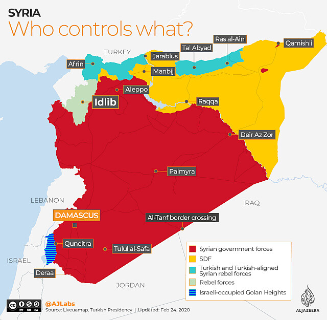 しばらくシリア北部、クルディスタンKurdistan地域をチェックしていなかったが、戦況図もそのメディアの解釈で違いはあるが、右のような支配分布が現状で、トルコが要求する安全地帯は、大きく2か所に分かれてトルコ国境沿いにある。 ラッカ県では、シリア人権監視団によると、シリア政府と北・東シリア自治局の共同統治下にあるアイン・イーサー(アイン・イッサAyn Issa)市近郊に位置するシャルカラーク村の穀物サイロで、ロシア軍士官とトルコ軍士官が会合を開き、同地で激化するトルコ軍の攻撃への対応について協議していたが、ANHA(2020年12月21日付)によると、この会談の数時間後、トルコ軍とその