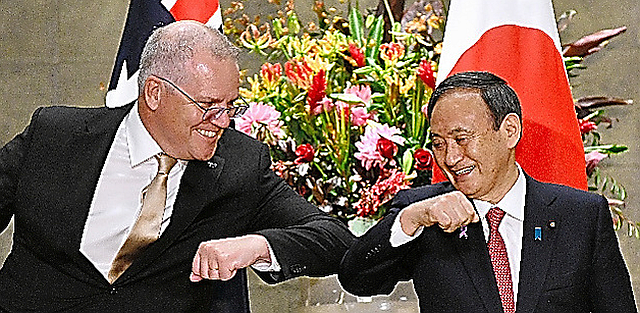 日豪は協力関係を深めており、協力して東シナ海や南シナ海で海洋進出を続ける中国を牽制(けんせい)する狙いがある。菅義偉首相は2020年11月17日、来日したオーストラリアのモリソン首相と首相官邸で会談し、自衛隊と豪州軍が共同訓練を行う際に、相互訪問を円滑化する協定について大枠合意した。 参照記事 英文記事 参照記事 英文記事