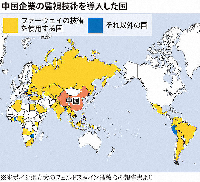 この記事の英文サイトには、中国のファーウェイHUAWEI製タブレットの写真が大きく掲載されている、、。右図は、これまでに監視技術などでファーウェイの技術を取り入れた国の分布で、エジプトも入っている。またエジプトは、5Gインフラでファーウェイの受け入れ国でもある。英文記事 エジプトの経済記事を見ても、エジプト企業とファーウェイの取引は急増している。エジプトはすでに、積極的に海外投資を受け入れ、国の近代化と製造企業の育成を行っており、中国がエジプトを基盤にして、アフリカ、中東に販路を拡大するのは間違いない事実だろう。 英文記事 過去ブログ:2020年8月欧州5G採用の行方とドイツのジレンマ 2019年9月サウジが5GでNOKIAと共同開発締結