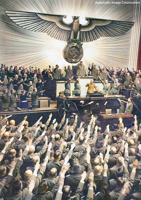 進行中の成果が2020年7月16日、『AIとカラー化した写真でよみがえる戦前・戦争』(光文社新書)として出版され、発売1ヶ月ほどで6万部を突破するなど話題を呼んでいる。著者は東京大学学生・庭田杏珠さんと東京大学大学院情報学環教授の渡邉英徳さん。人工知能でカラー化された写真は訴える(画像集) 参照記事 参照記事:東京大学大学院 情報学環・学際情報学府「AIとカラー化した写真でよみがえる戦前・戦争」 出版のお知らせこのブログを書いている2020年12月18日、月日に近いカラー化された写真を探してみると、1940年12月17日,日独伊三国同盟の祝賀会が東京で開かれ、日本・ドイツ・イタリアの3カ国の子供たちが国旗を掲げて同盟締結を祝っている様子と、1941年12月11日,ベルリンのクロルオペラハウスにてアメリカ合衆国に宣戦布告し,帝国議会から敬礼を受けるアドルフ・ヒトラーの写った写真がツイッター上に在った。