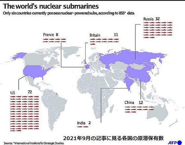 、、、中国は、自国は核兵器保有が許容された5か国に含まれているので保有するが、豪州は5カ国に含まないので核兵器不拡散条約違反だと、全くの詭弁を展開している。(現実に中国を縛る核軍縮条約は存在せず、中国は「まずは米ロが核兵器を減らすべき」と核軍縮交渉には後ろ向き)問題は搭載可能な核弾頭ミサイルであり、原子力潜水艦自体は核兵器では無い。また豪州は、原潜のミサイルに核兵器(核弾頭)は搭載しないと明言しており、中国が、それを搭載するかもしれないとの憶測で豪州を非難するのは、反対するための拡大解釈としか言いようがない。実際、核弾頭ミサイルを搭載しない原子力潜水艦はインドも保有し、インドは核弾頭も保有するが、原潜への搭載は公式に表明していない。