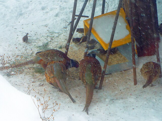 、、、、今日2021年12月27日、札幌郊外の我が家は今年一番の大雪の中、外出もできないが、50cmほどの積雪と風雪の中、スズメやハト、そしてキジ達は、筆者がやっとの思いで