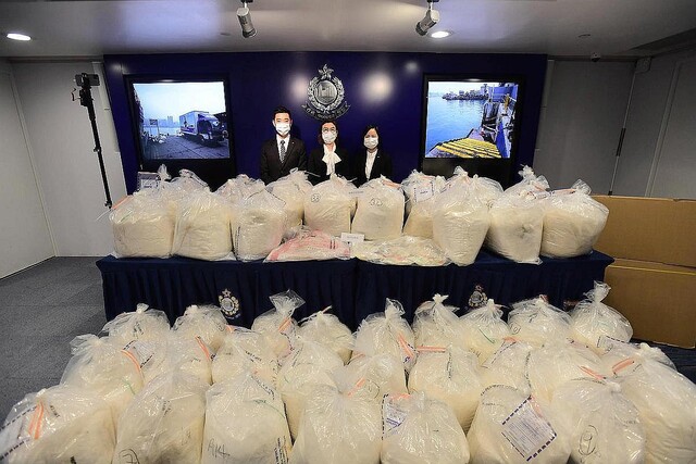 香港警察は2021年12月25日、麻薬のケタミン:Ketamine約 1.3トン、末端価格にして約8億4000万香港ドル(約120億円:$107 million )相当を押収したと明らかにした。押収量としては香港史上最多で、今年これまで11か月間の全押収量を上回った。ケタミンは強力な麻酔薬であると同時に特異な幻覚作用故に乱用の懸念があることから麻薬に指定されている薬剤で、非常に優れた抗うつ効果のあることが知られる市販製薬でもある。