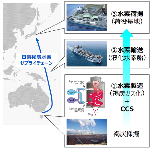 元々は、新日鉄エンジニアリングが開発したECOPRO(エコプロ)と呼ぶ技術を応用した国立研究開発法人新エネルギー・産業技術総合開発機構(NEDO)による「褐炭水素プロジェクト」を、褐炭が豊富なオーストラリアで実証実験し、日豪政府も協力して企業組織を立ち上げて商業化へこぎつけた物で、その詳細が2011年8月に報道されていた。当時の記事は、2012年度から1日200トン~300トンの石炭を投入する実証炉の設計に入り、2016年度にも稼働させる。実証後はそのまま商業運転に入る予定。並行して同1000トン以上の大規模な商業プラントを2018年度から建設し、2021年度から運転に入る計画だと書かれており、日本が水素の活用に積極的な背景にもなっているようだ。また、炉が稼働する地元では、排熱を利用して石炭ガス化複合発電(IGCC)プラントをつくり発電することも可能だと説明されている。 参照記事:褐炭は世界の原料市場を変えるか