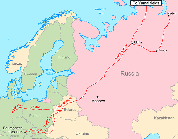 ロシアが欧州連合(EU)とウクライナ国境緊張などで対立を生じさせている中で、ロシアから欧州に向かう天然ガス供給量が急減したとロイター通信が2021年12月21日に報道した。ロシアの「エネルギー武器化」により冬季の欧州でエネルギー大乱が現実化するとの見通しが出ている。「ヤマル・ヨーロッパ:Yamal-Europe(YEP)」はロシア西部トルジョークからベラルーシのミンスク、ポーランドを経てドイツ東部フランクフルトに至る2000キロメートル以上のガスパイプラインだ。ロシア国営ガス会社ガスプロムGazpromが運営し欧州へ向かうロシア産ガスの20%を供給する。EUは天然ガス輸入量の40%以上をロシアに依存している。 パイプ図参照記事