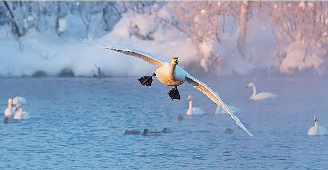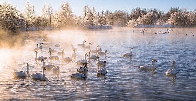 驚くべきことである。スヴェトロエ(スベトロエ)湖 Svetloe Lake in Altai region, in Siberiaは、厳冬のシベリア、ウロジャイノエ村から3キロほどのところにある。湖に、オオハクチョウ(オオハクチョウは、ツルのような長く低い声を出すことから、ロシア語では声を上げるハクチョウという名前がつけられている)がよく渡来することから、地元の人々は、この湖を「白鳥の湖」と呼ぶ。毎年11月くらいから、500羽以上の白鳥が集まる。