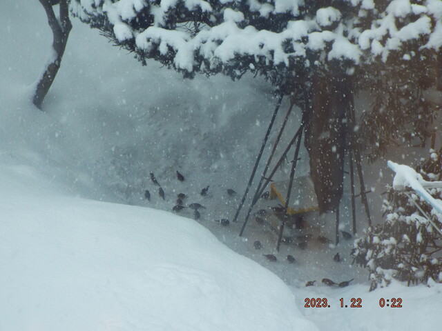 筆者がキツネに餌を用意している理由は幾度か書いたので繰り返さないが、今に至るには数年の観察と、研究者のアドバイス、協力してくれる企業の助けが在って成り立っており、今年も我が家の周りの縄張りの中で、キツネ2匹が毎日元気に生きている。不定期だが、病気などの対策も行っている。野性たちにとって、雪の降る冬は厳しい。冬だけだが、30羽のスズメや野鳥たちへの給餌も毎日続いている。